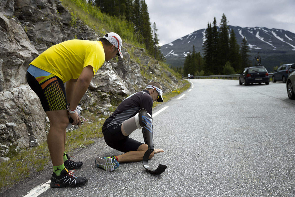 In 2015, Jeff Glassbrenner is the only athlete who partecipates Norseman Extreme Triathlon with a prothesis.